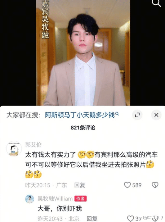 郭艾伦写道:“太有钱太有实力了,有宾利那么高级的汽车,可不可以等它修好以后,借我坐进去拍张照片?”